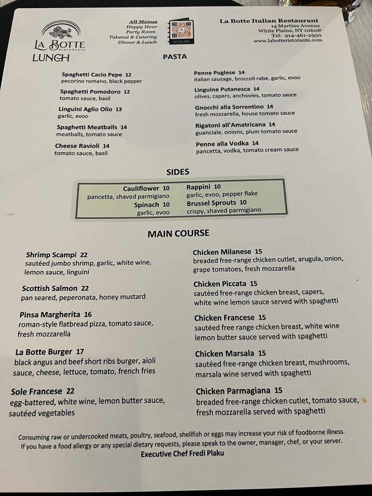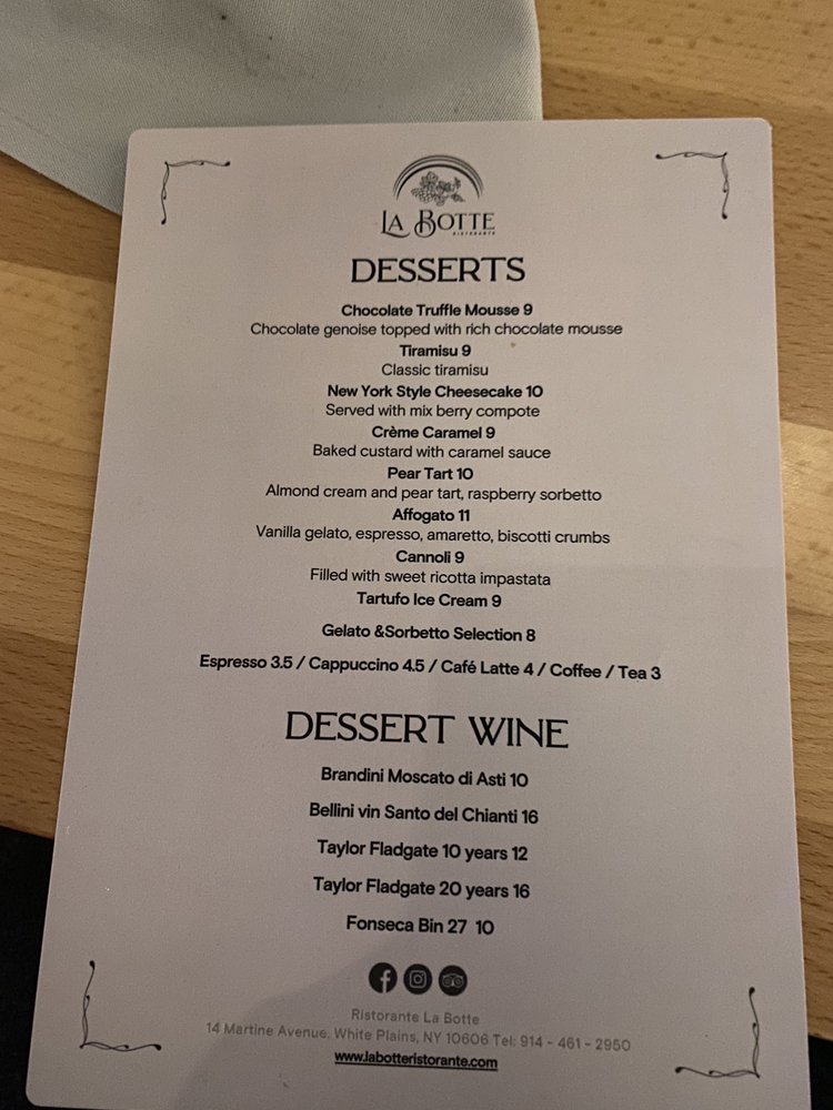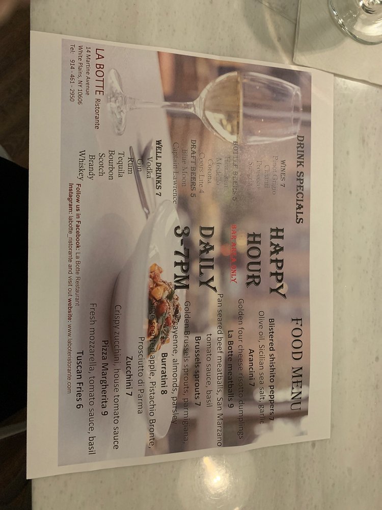 La Botte Ristorante is a classy yet casual Italian restaurant in White Plains, NY, offering a diverse menu of salads, pizzas, sandwiches, and starters. The menu includes classic favorites like Caesar salad, margherita pizza, and baked clams, as well as unique dishes like shrimp arrabbiata and beef carpaccio. Customers rave about the homemade pasta and generous portion sizes. The cozy atmosphere and friendly service make for a pleasant dining experience. The restaurant also offers outdoor seating, wheelchair accessibility, and accepts cryptocurrency. Whether you're craving a hearty meal or looking for a quiet spot to relax, La Botte Ristorante is a hidden gem worth visiting.